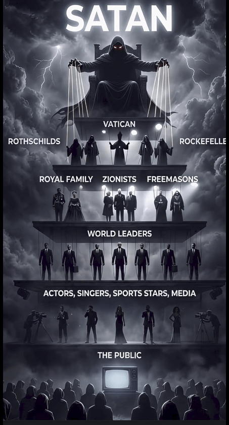 I have long said that the Vatican along with the Bank Of England are in control of much of the world. As regard the families of the Rothschilds and Rockefeller those families we know about, but I am offering that the real people pulling the strings we have never even heard the names of and are hidden behind the curtains in the skirt of Satan. But under also the Vatican. I think it goes Satan on top controlling the Vatican, the Vatican controls the Bank of England IE the money supply, next under the Vatican and the Bank of England are the families we have never even heard of who control all the rest. You see, the governments of the world could aim their guns sort of speak at the people they know about, but it is real hard to aim your gun at a target that no body even knows exist.
